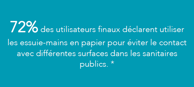 L’essuyage rigoureux des mains est tout aussi important que le lavage adéquat des mains pour assurer une bonne hygiène des mains. Un séchage insuffisant des mains laisse les espaces interdigitaux humides, un environnement dans lequel les microorganismes peuvent se multiplier rapidement. Le séchage avec des essuie-mains élimine par contre considérablement plus de bactéries que d’autres méthodes. En outre, les essuie-mains peuvent s’utiliser de diverses façons : pour se moucher, nettoyer des lunettes ou comme protection efficace de la poignée de porte.