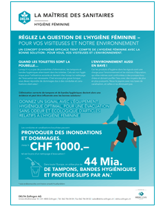 Un concept d’hygiène efficace tient compte de l’hygiène féminine avec la bonne solution : Pour vous, vos visiteuses et l’environ-nement. Nous avons établi un aperçu des informations factuelles importantes et les conseils précieux.