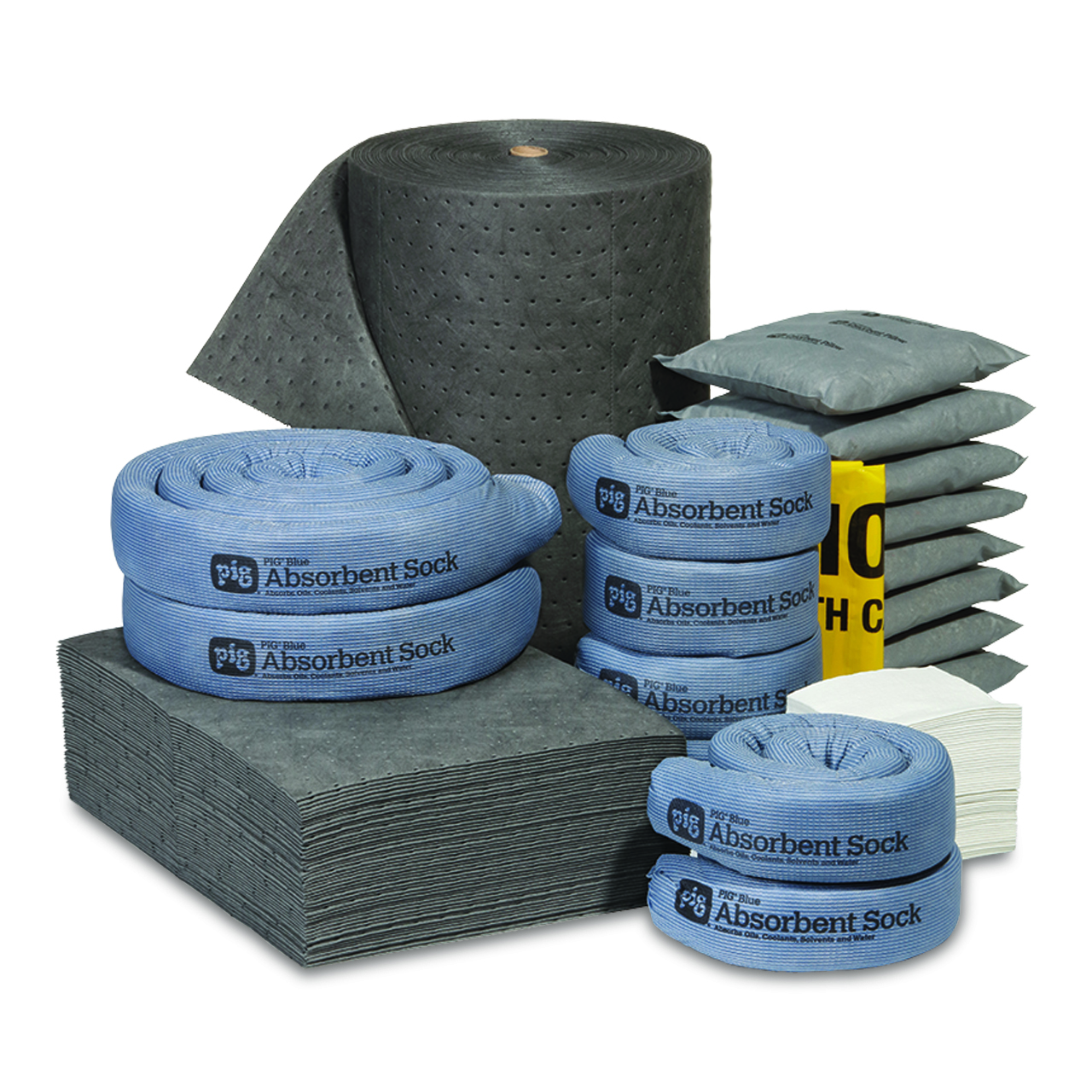 - blaue PIG®-Saugstrümpfe verhindern, dass sich Leckagen ausbreiten; PIG®-Matten und Rollen binden Verschmutzungen schnell; PIG®-Kissen und -Allzweckwischtücher dienen zur abschliessenden Reinigung